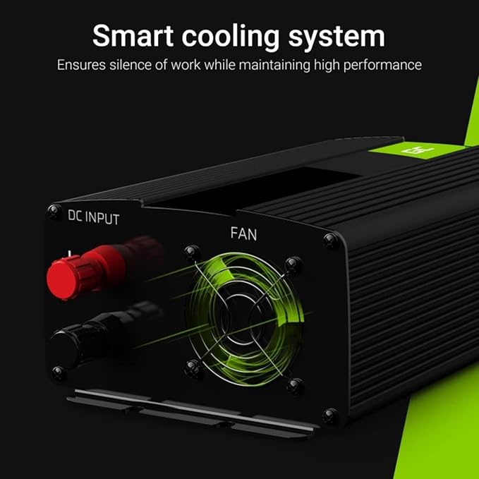 Power your essential 220V devices directly from a 12V battery with the Green Cell pure sine wave inverter, delivering 300W continuous and 600W peak power. Ideal for use in cars, RVs, boats, and off-grid setups. Note: a standard cigarette lighter socket cable allows up to 150W output.