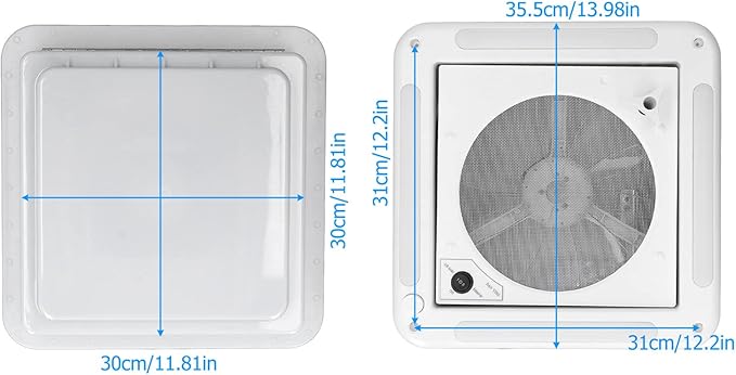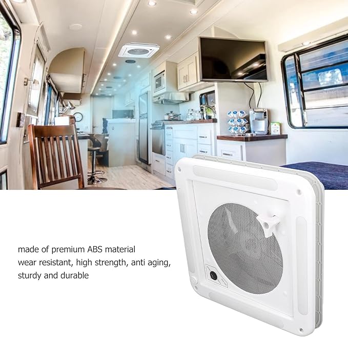 Premium ABS RV roof fan with reversible ventilation to refresh air inside your motorhome or caravan. Features quiet operation (3.6W), easy installation without modifications, and an insect-proof mesh. Equipped with 4 LED lights, this durable fan ensures comfort and convenience while keeping insects out.