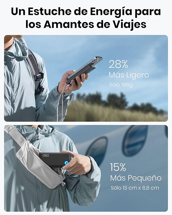 The INIU 10000mAh Ultra-Slim Power Bank combines high capacity with an exceptionally thin and lightweight design. With a body thickness of just 1.5 cm, it breaks the limits of traditional 10,000mAh power banks, making it one of the thinnest on the market. It easily fits into pockets, backpacks, or travel bags—perfect for weekend trips, daily commuting, and outdoor adventures.